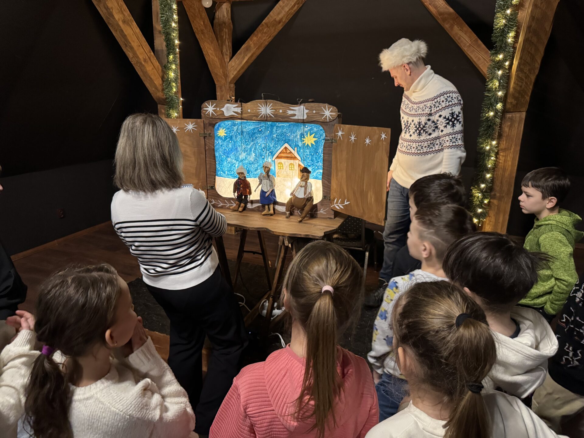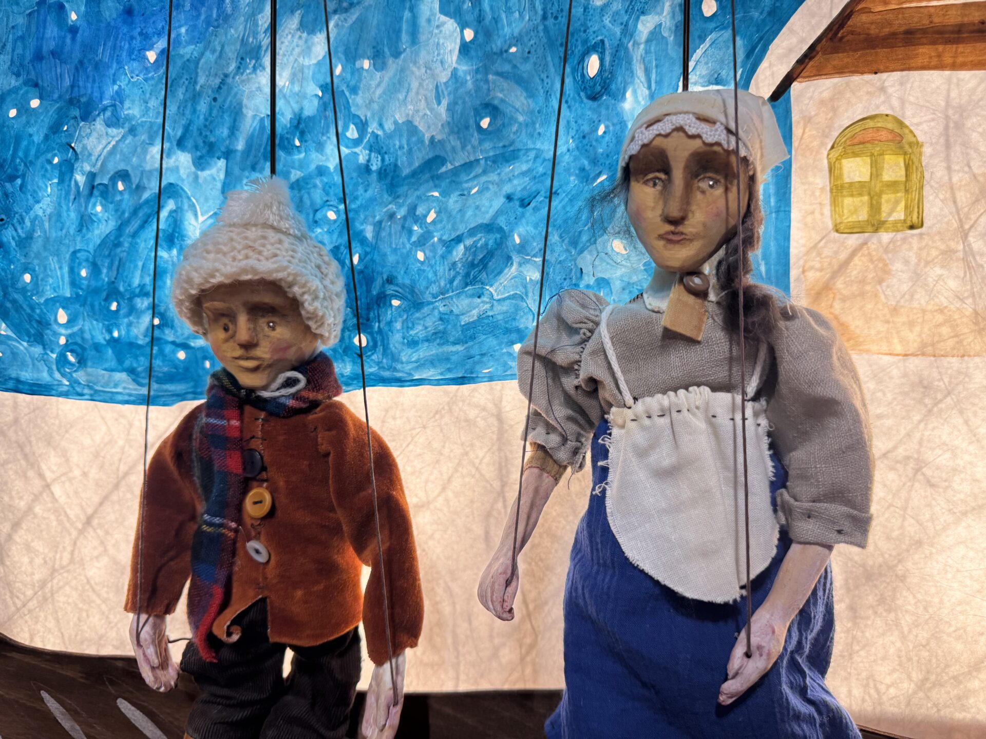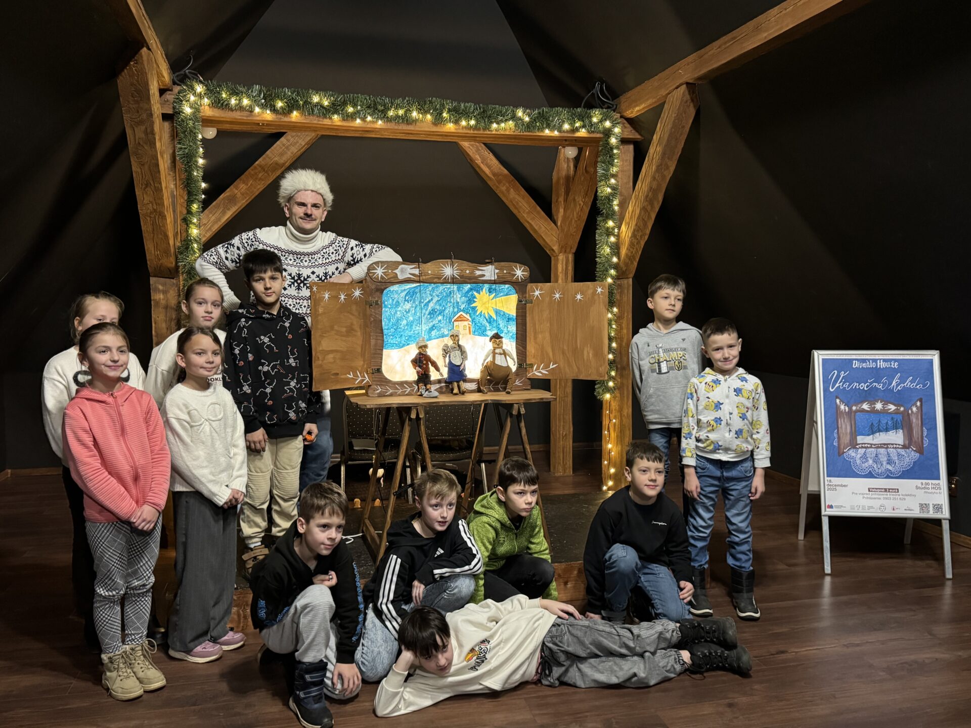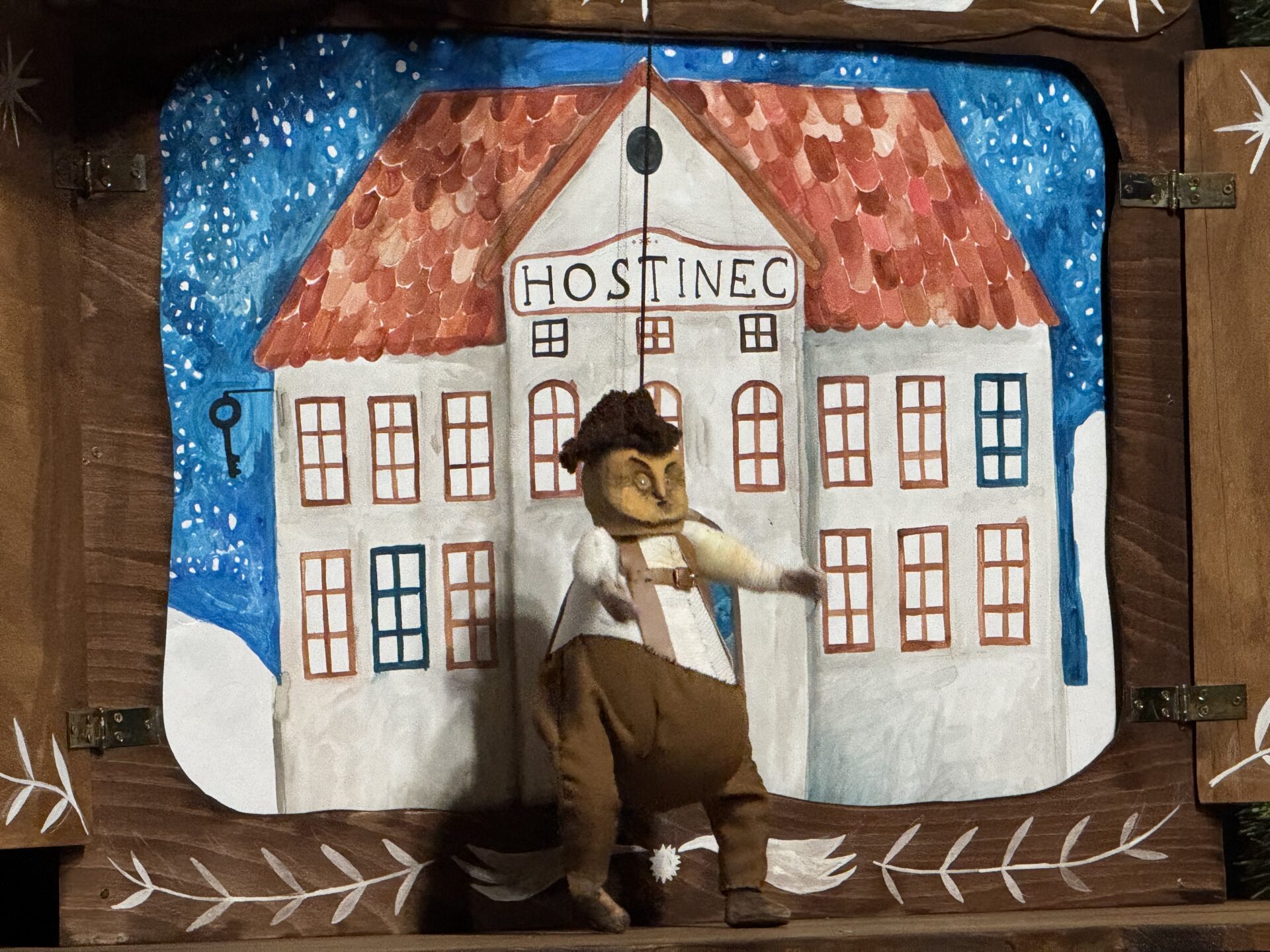 Malí diváci sa ocitli v čarovnej atmosfére, kde uvideli originálny príbeh rozprávaný prostredníctvom „crankie“ škatuľky, fungujúcej ako ozajstný filmový pás. To všetko v spoločnosti drevených bábok a vianočných piesní, ktoré dotvárali výnimočný sviatočný zážitok.